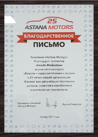 Безупречное качество видеосъемки в Алматы медийного контента напрямую зависит не только от профессионализма и высокой организации сотрудников, которые создадут увлекательную идею, напишут креативный сценарий и воплотят его в коротенький видеофильм. Такое сложное направление в рекламе как видео производство, требует наличия высококачественной аппаратуры для съемок и цифровой обработки видео. Мы располагаем всем необходимым для того, чтобы видеоролики на заказ в Алматы получались интересными, познавательными, смотрелись ярко и живо, ведь у любого видеоматериала гораздо больше шансов попасть в топ популярных сайтов, нежели текстовый формат.